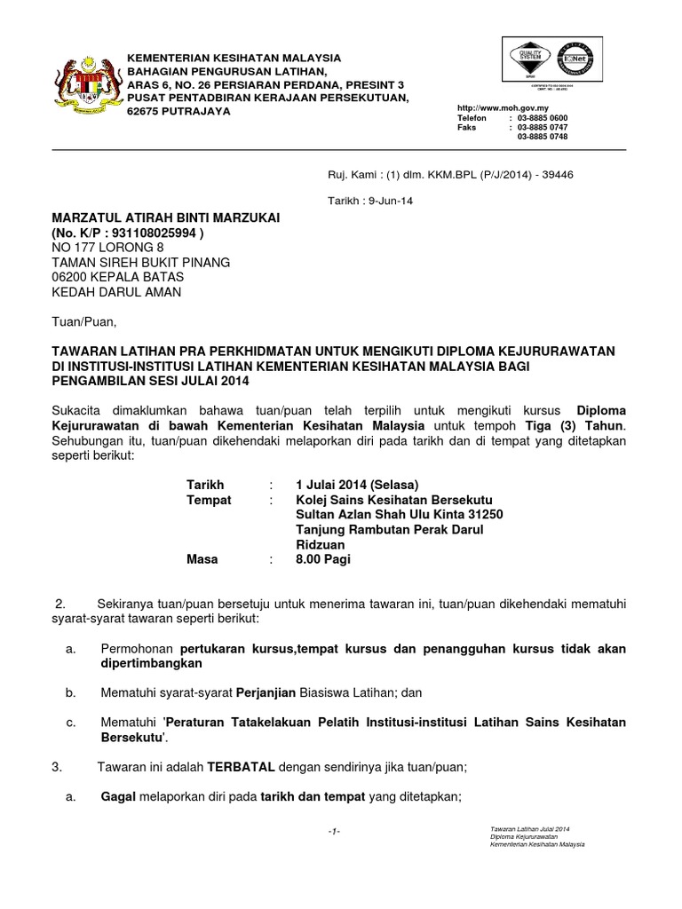 . Surat itu boleh dihantar melalui e-mel atau surat. Tarikh mula bekerja. Tempoh bekerja Tempoh bekerja adalah tetap anda akan melalui tempoh percubaan probation selama.